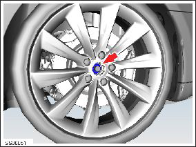 - Remove the center cap from the front LH wheel and loosen the axle nut (torque 245 Nm).
