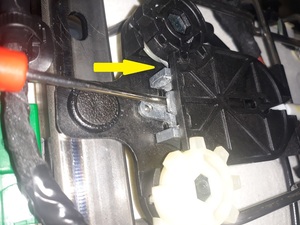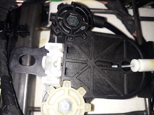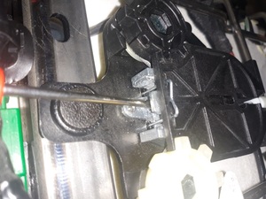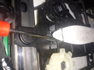 - Position the 2nd row seat 40 track EZ entry actuator on the vehicle, and then install the tabs (x3) that attach the actuator to the bracket.