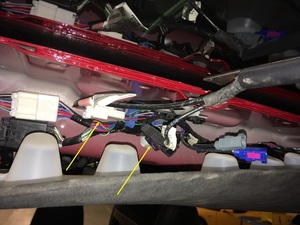 - Disconnect the windshield harness at the front of the headliner, and then use a plastic trim tool to release the windshield harness from the windshield bracket.