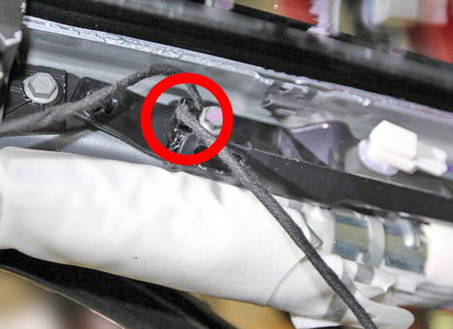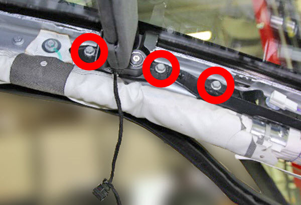 - Remove the bolts (x3) that secure the sun visor and support bracket (torque 4 Nm).