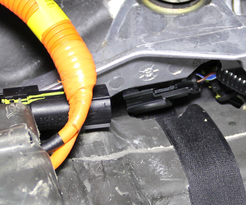 - Connect the compressor HV harness to the forward junction box.