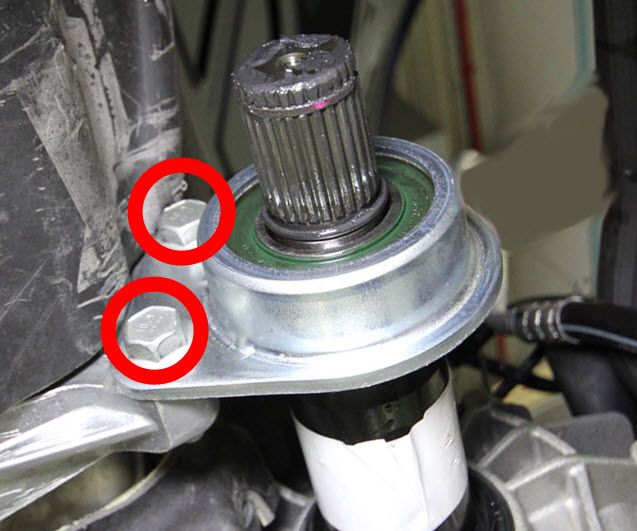 - Remove the bolts (x2) that attach the jackshaft to the front drive unit (torque 30 Nm).