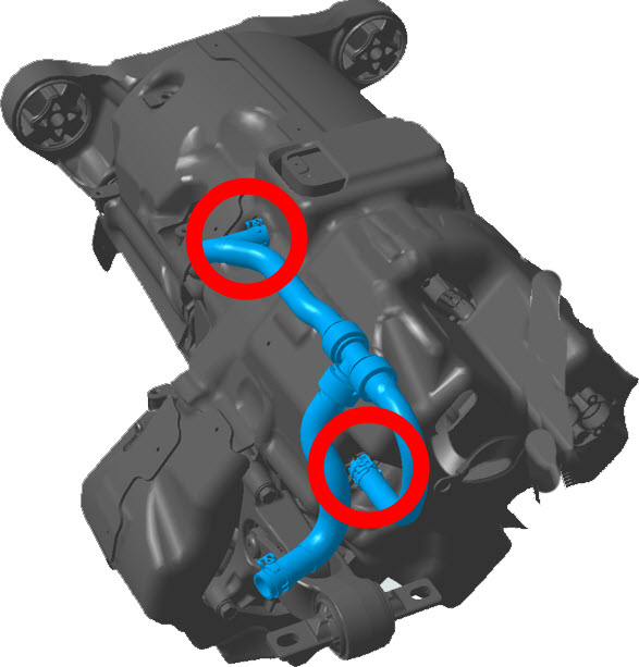 - Connect the front drive unit coolant hoses to the front and LH side of the front drive unit, and then release the clamps from the hoses.