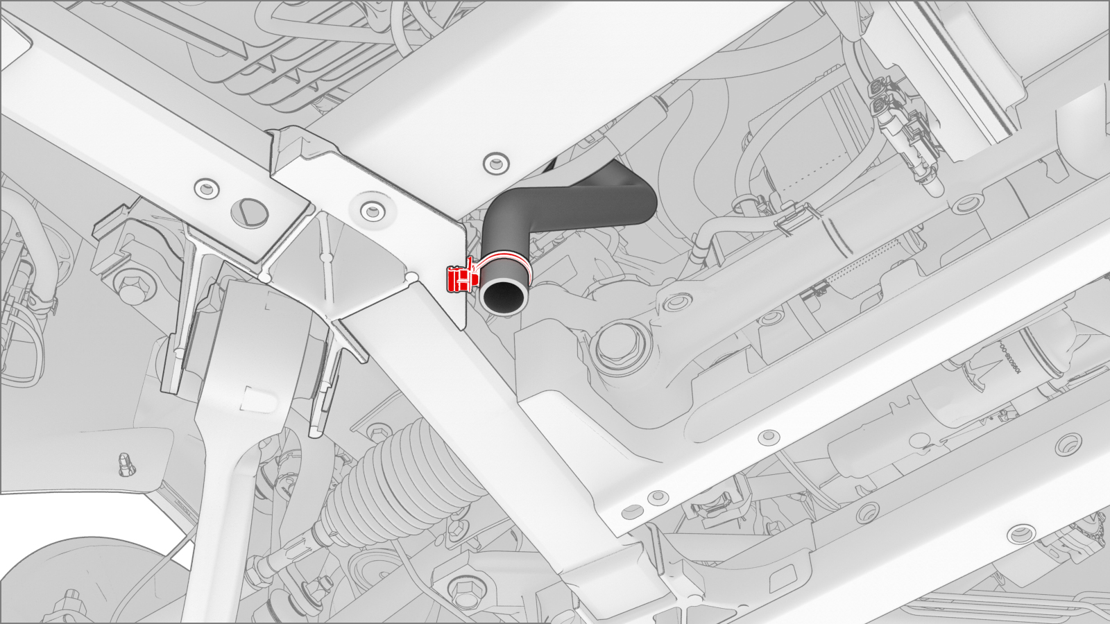 - Install the clip that attaches the cowl screen drain hose to the front subframe assembly.