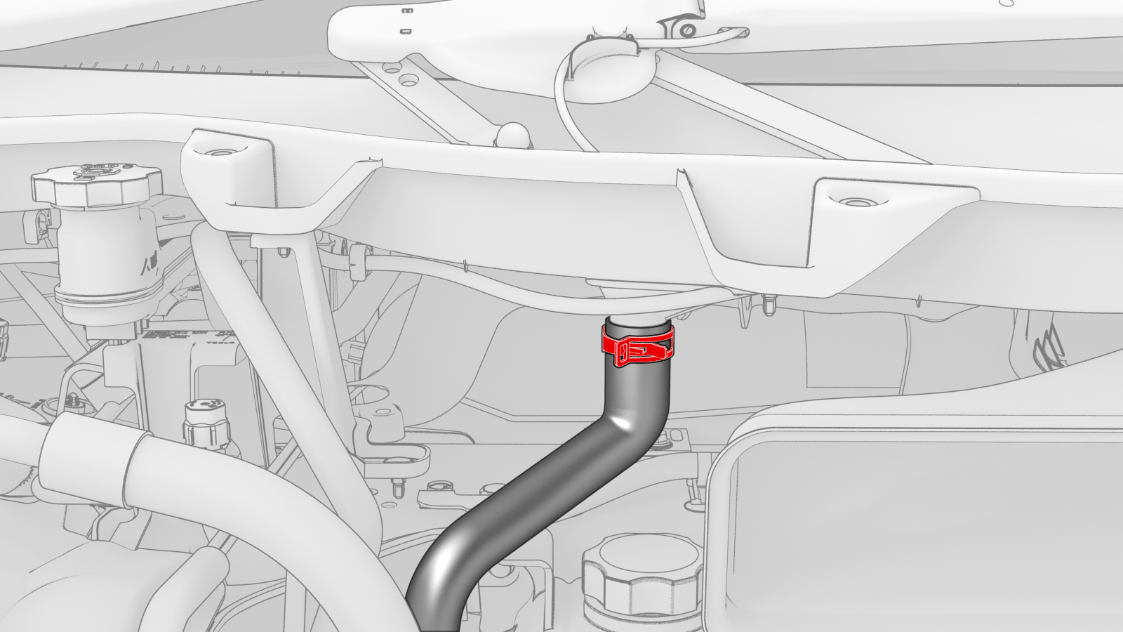 - Remove the clip that attaches the cowl screen drain hose to the front subframe assembly.