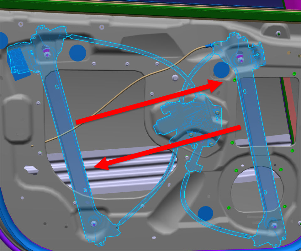 - Push the regulator outboard so that the studs no longer protrude through the door shell.
