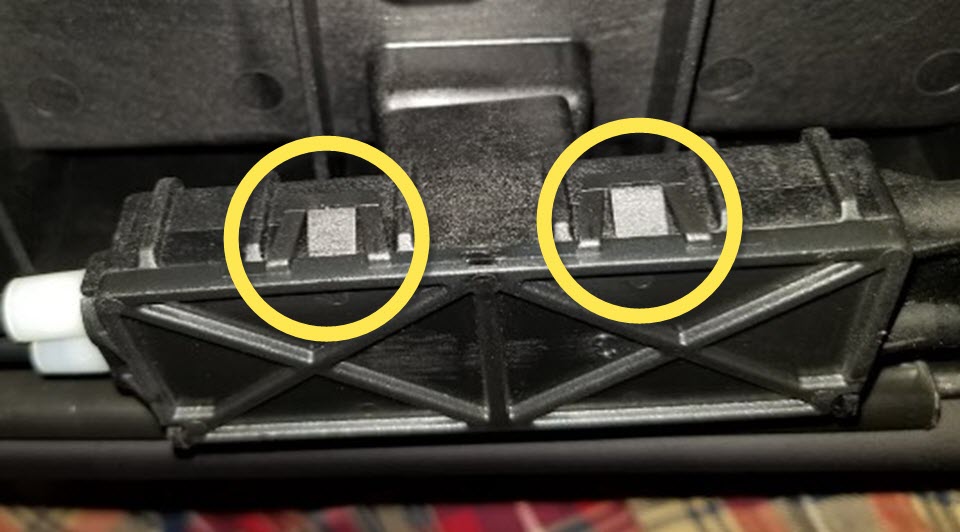 NoteSqueeze the rear edge of the tabs (x2) simultaneously. Once the tabs are released, pull the lock out.