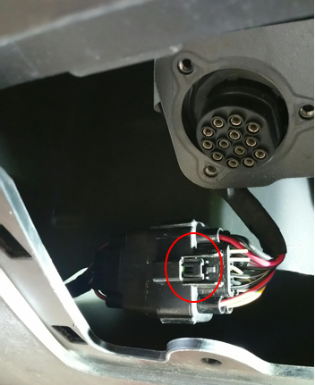 - Release the clip that attaches the trailer harness electrical connector to the trailer hitch.