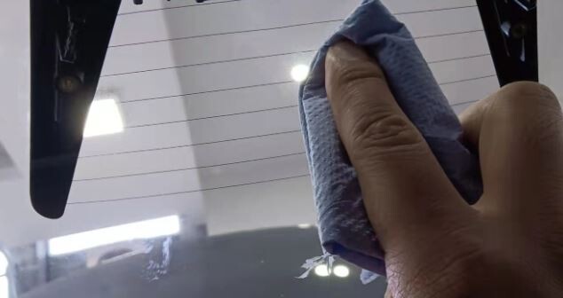- If there is no foam tape applied to the glare shield, cut pieces of 6 mm x 30 mm double-sided foam tape and apply them to the glare shield.