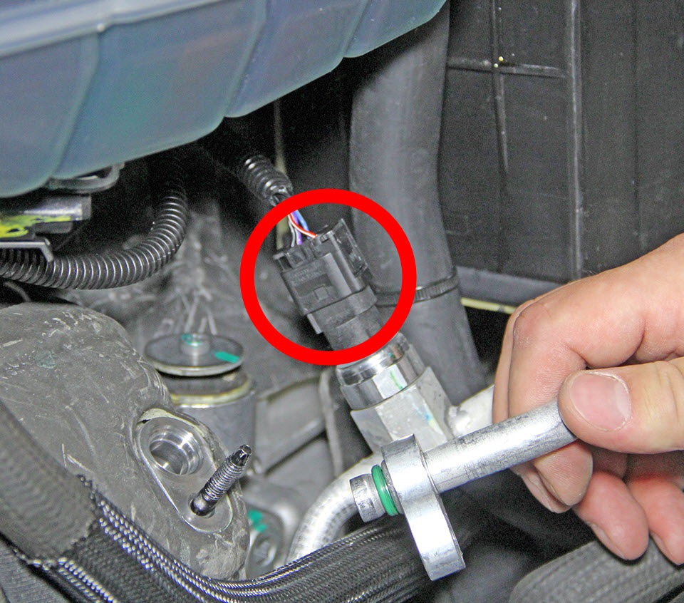 - Remove the compressor-to-condenser high pressure pipe from the vehicle.