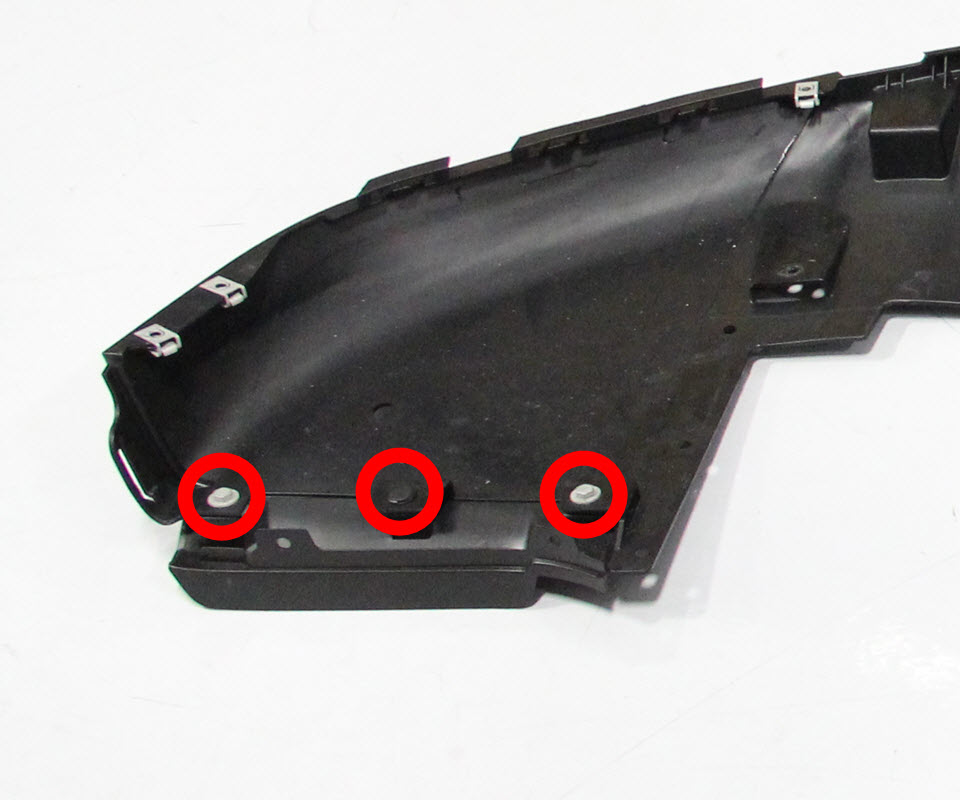 - On each side of the valance, remove the screws (x2) and push clip that secure the wheel fairing to the valance (torque 3 Nm).