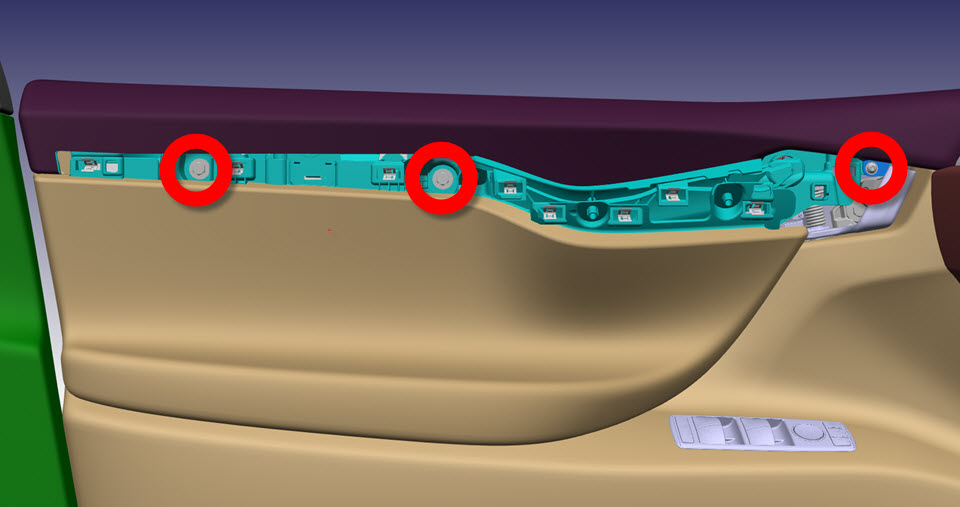 - Release the fasteners (x3) that secure the trim panel (torque 6 Nm).