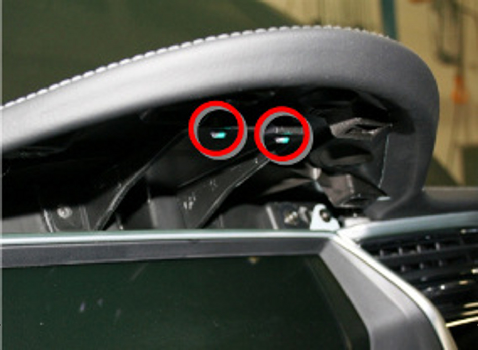 - On each side of the vehicle, release the screw that secures the top pad to the IP bracket (torque 1.2 Nm)