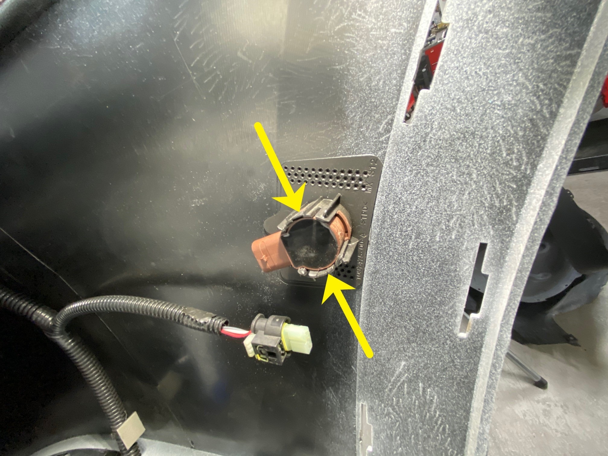- Connect the electrical harness to the parking distance sensor, and then enage the locking tab.