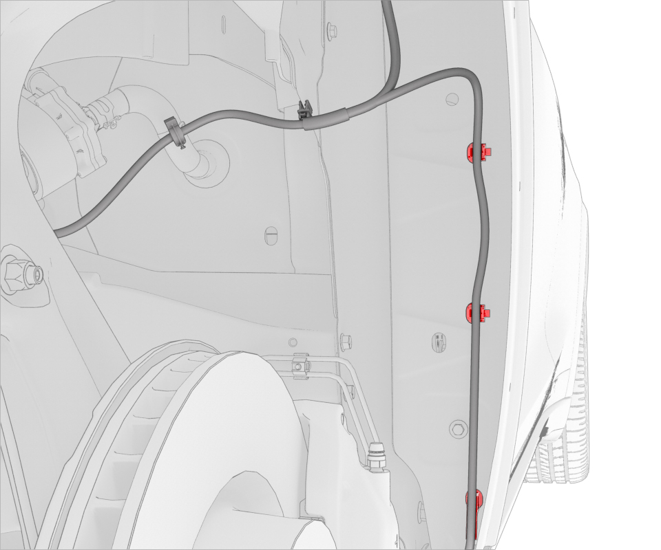 - Remove the bolts (x4) that attach the upper LH front fender to the vehicle.