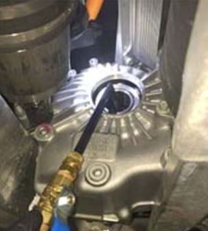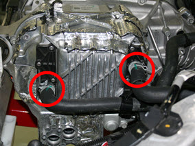 - Install the 2 coolant hoses to the RH side of the small rear drive unit.
