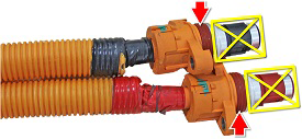 - Carefully inspect the connector seals of the HV cables. If any are damaged, replace them.