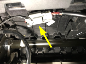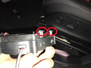 - Disconnect the LH front seat cushion fan connector and the harness clip.