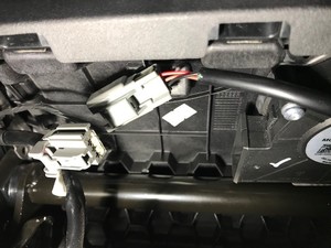 - Connect the LH front seat cushion fan connector, and install the harness clip.