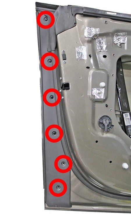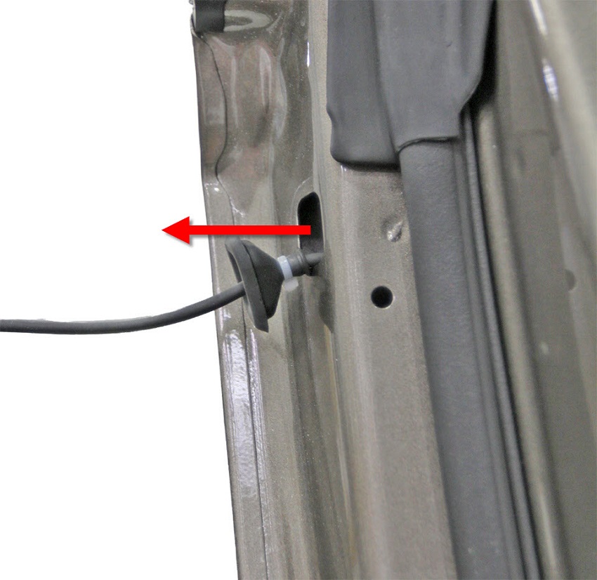 - Reach in through the door cavity and release the fir tree clip that secures the pinch sensor harness to the door.