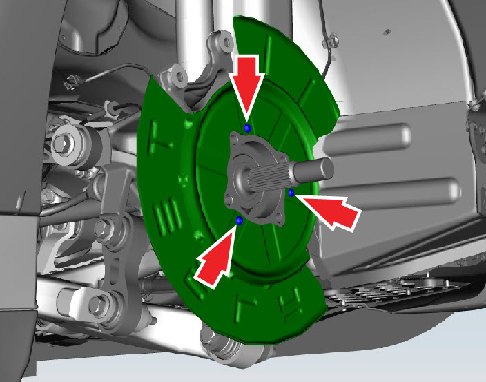 - Remove the screws (x3) that secure the dust shield to the knuckle (torque 8 Nm).