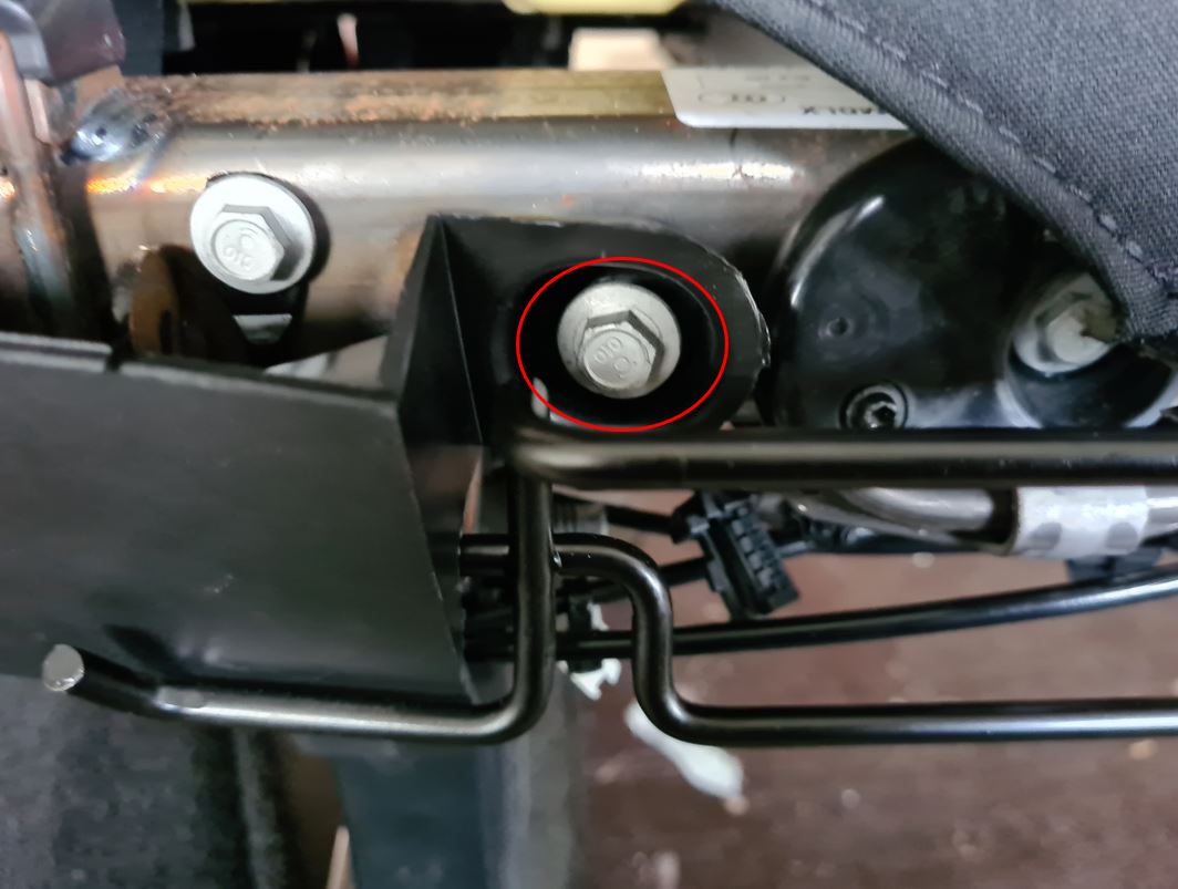 - Loosen the bolt that attaches the center seat buckle to the seat frame (torque 45 Nm), and then remove the seat buckle.