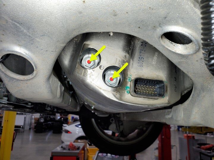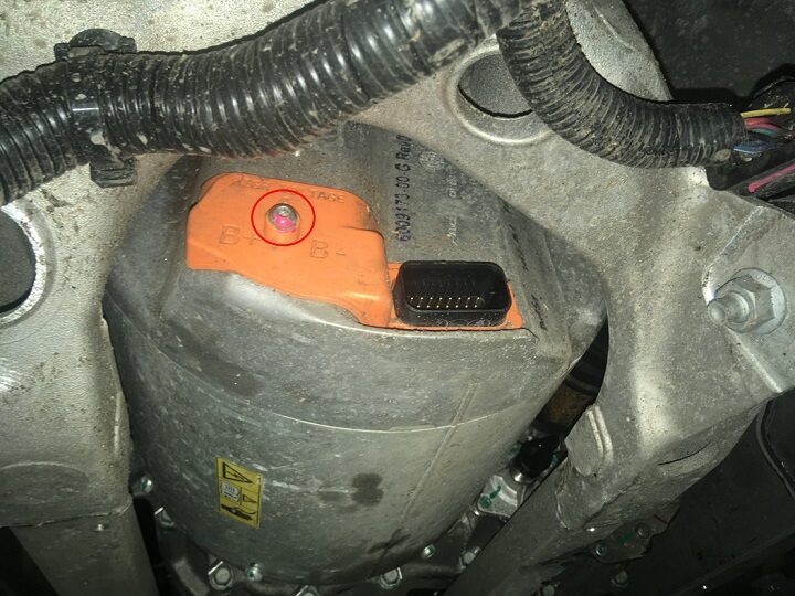 - Measure resistance at the B+ and B- terminals of the rear drive unit inverter and record value