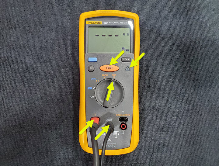- Set the test voltage to 500V