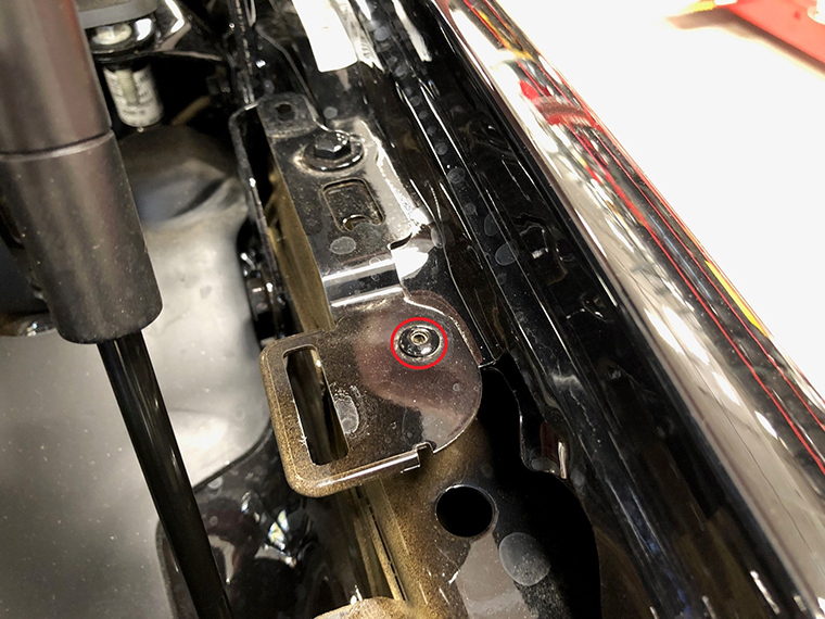 - Use a 10 mm deep socket to remove the bolt that attaches the LH apron attachment bracket to the body (torque 8 Nm).