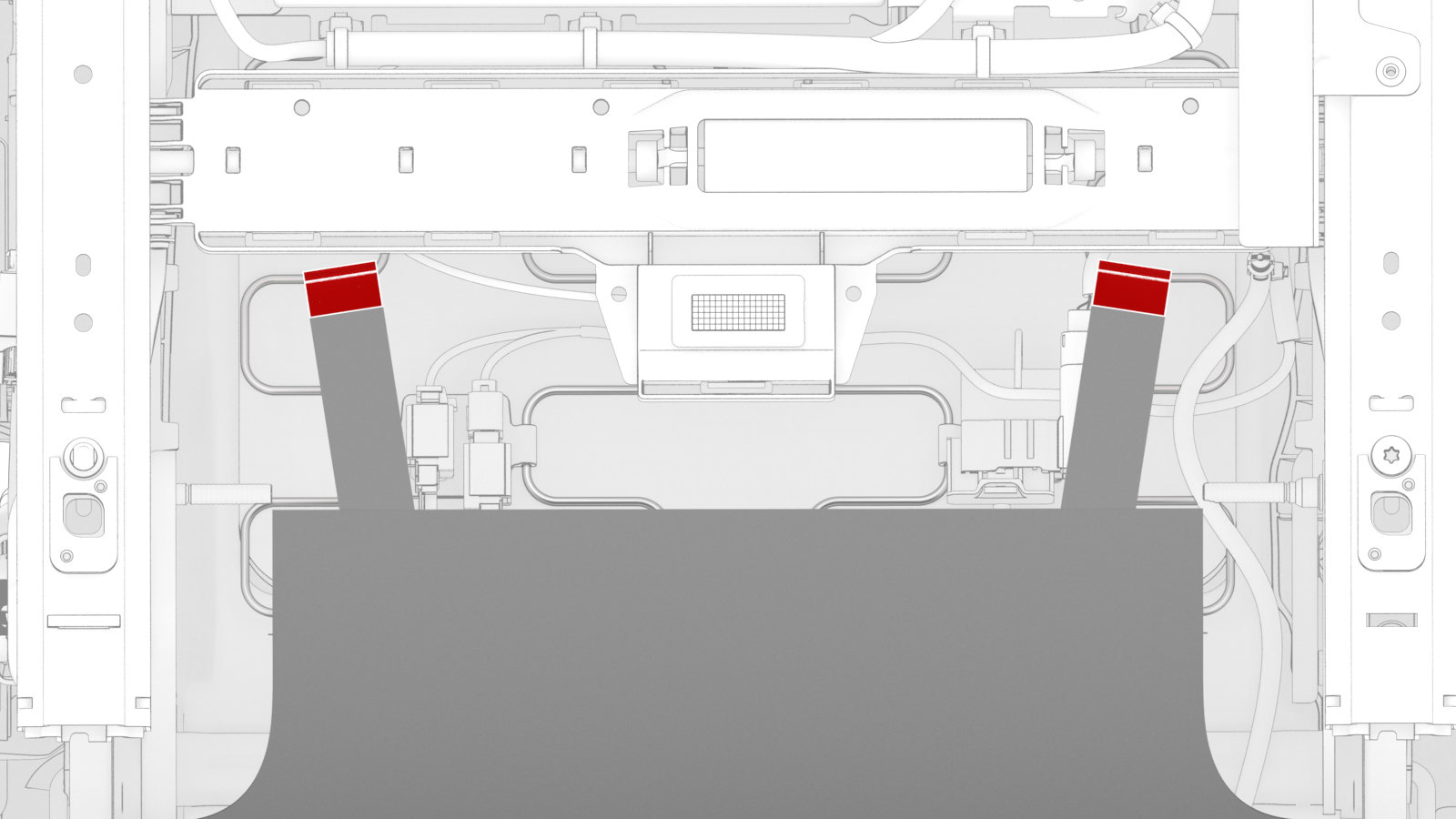 - Install the j-hooks that attach the rear toe kick to the underside of the driver's seat assembly.