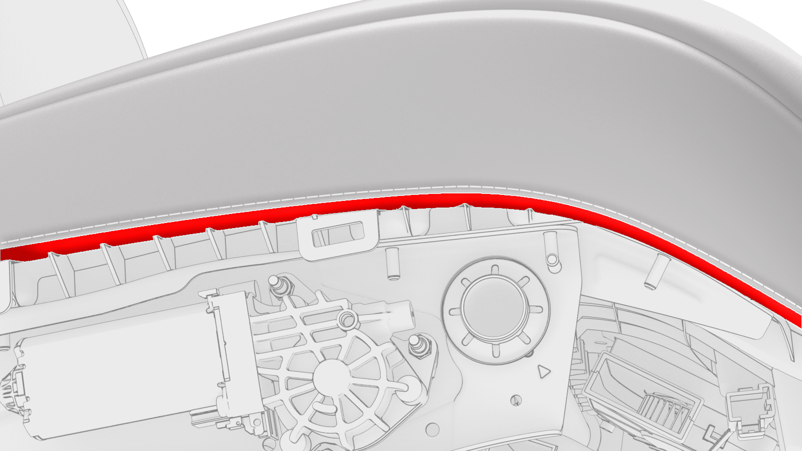 - Lift the rear lower panel and install the screw that attaches the inner seat trim to the driver's seat assembly (torque 2 Nm).