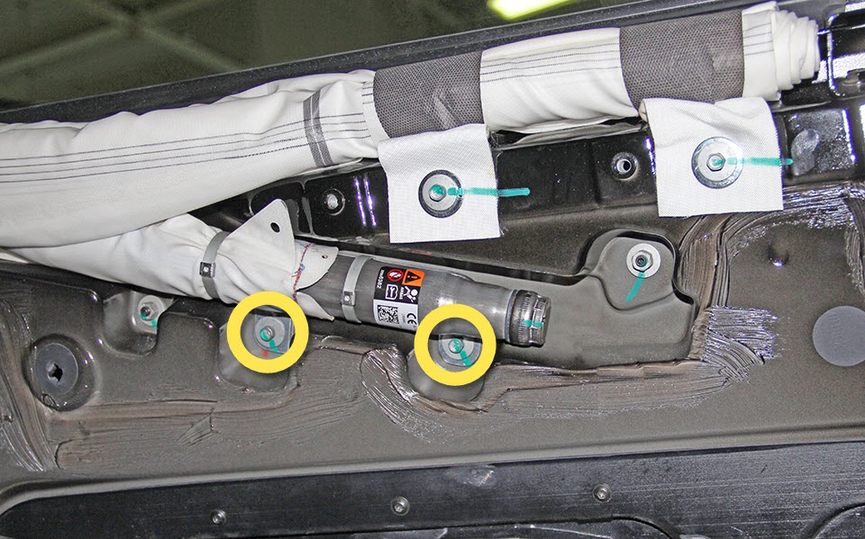 Remove and discard the bolts (x6) that secure the curtain air bag to the