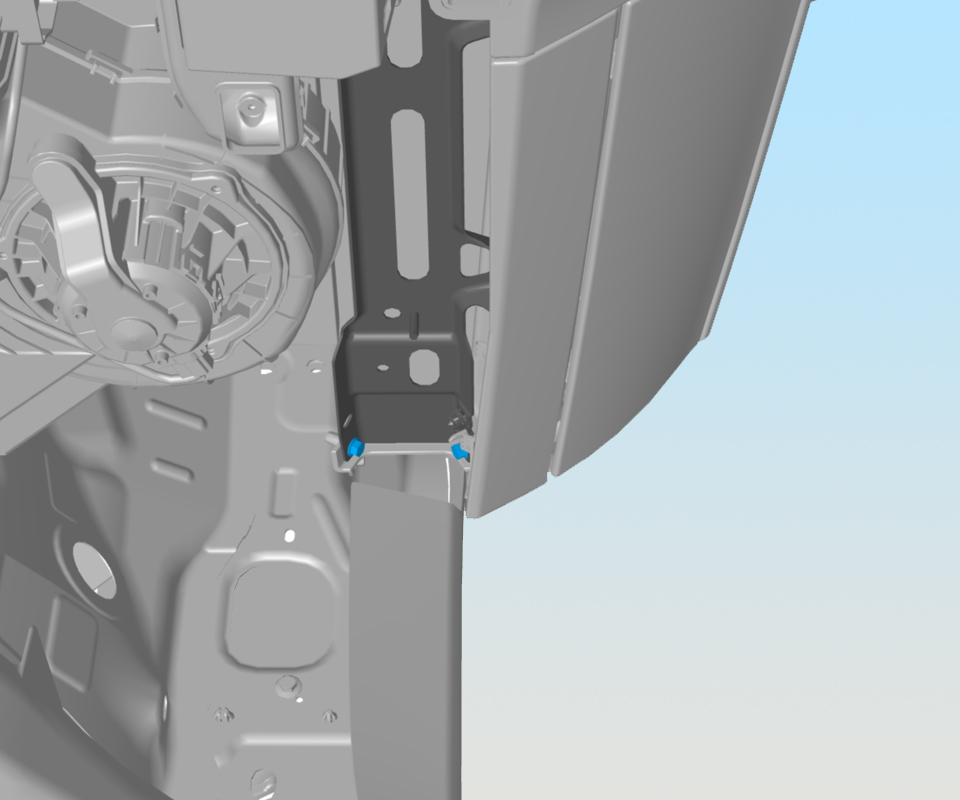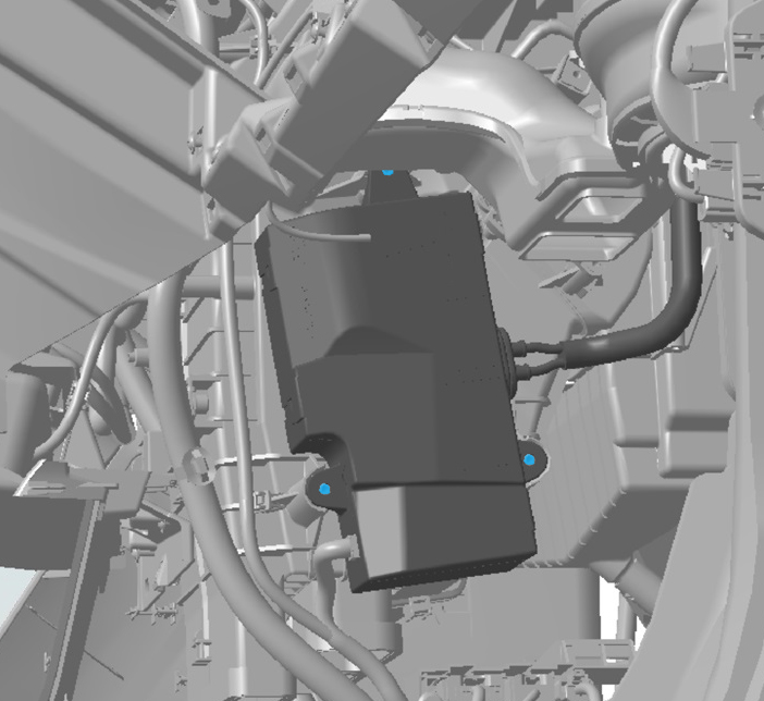 - Remove the screw (torque 1 Nm) that attaches the RH footwell duct to the HVAC assembly, and then remove the RH footwell duct.