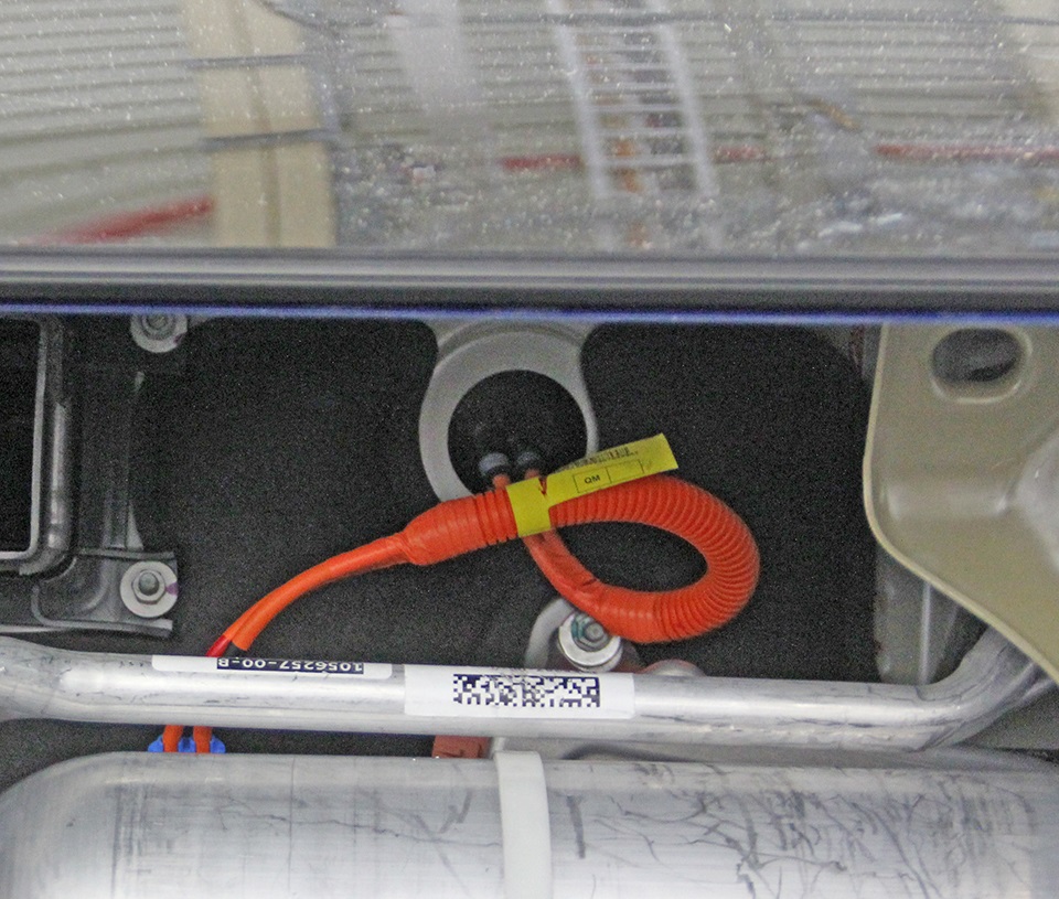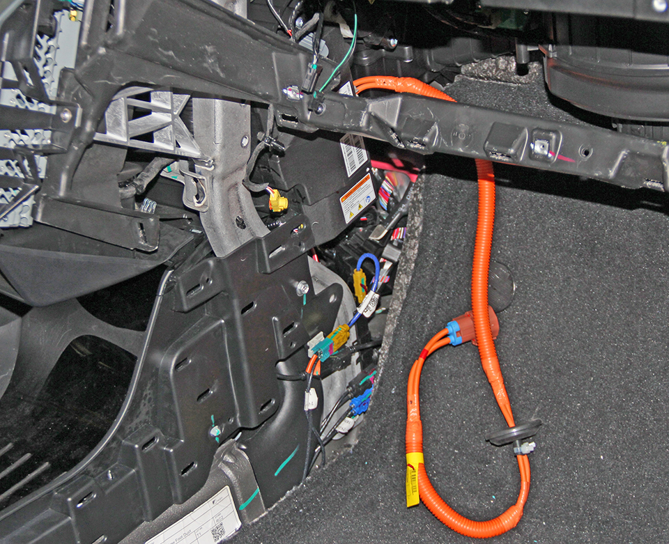 - Carefully pull the HV cable through the bulkhead into the cabin of the vehicle.