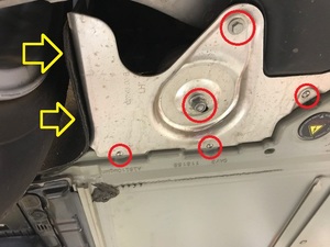 (x3) that attach the LH C-pillar bracket to the body.
