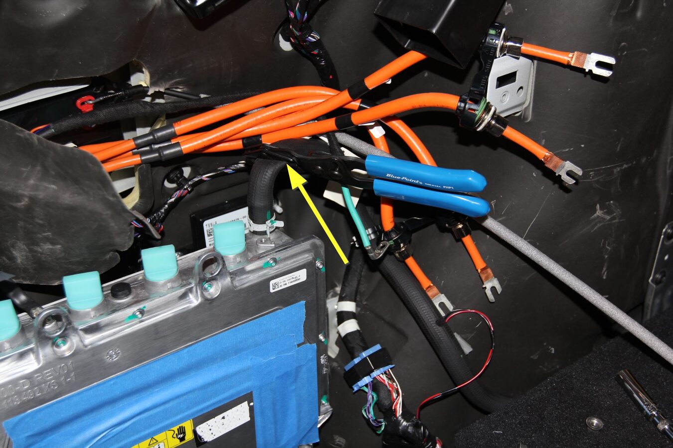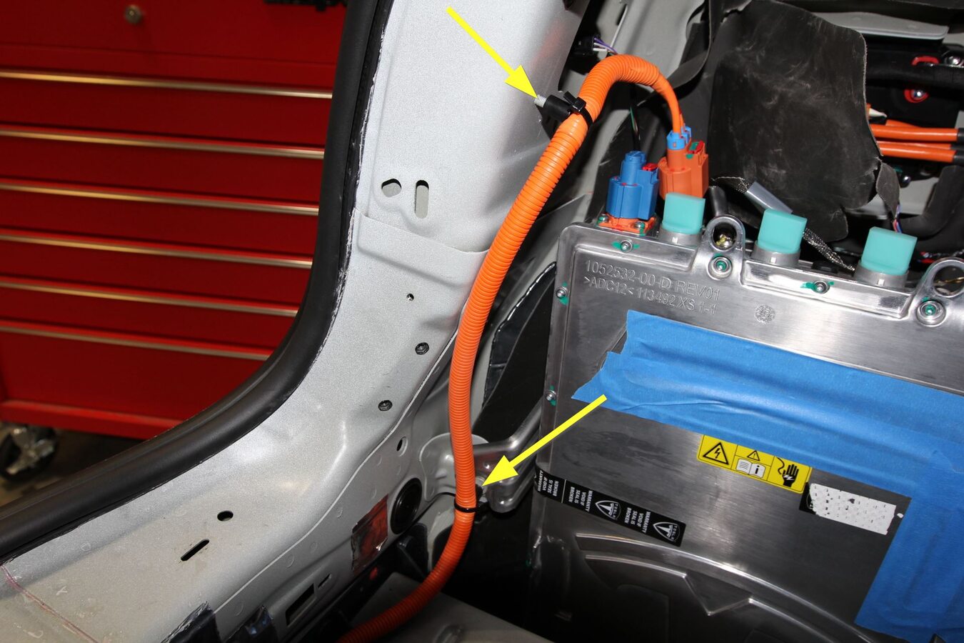 the rear pair of HV cables from the charger.