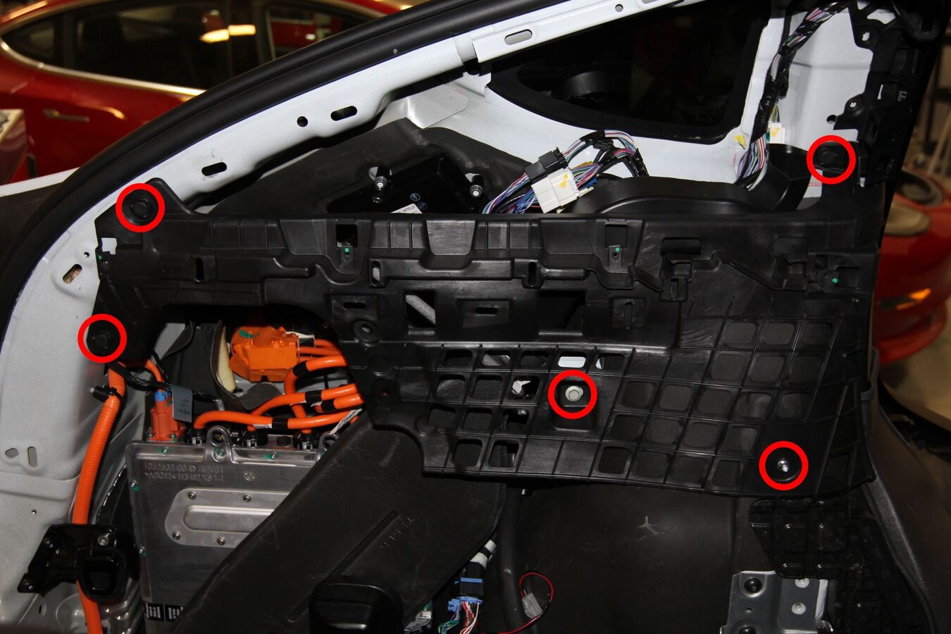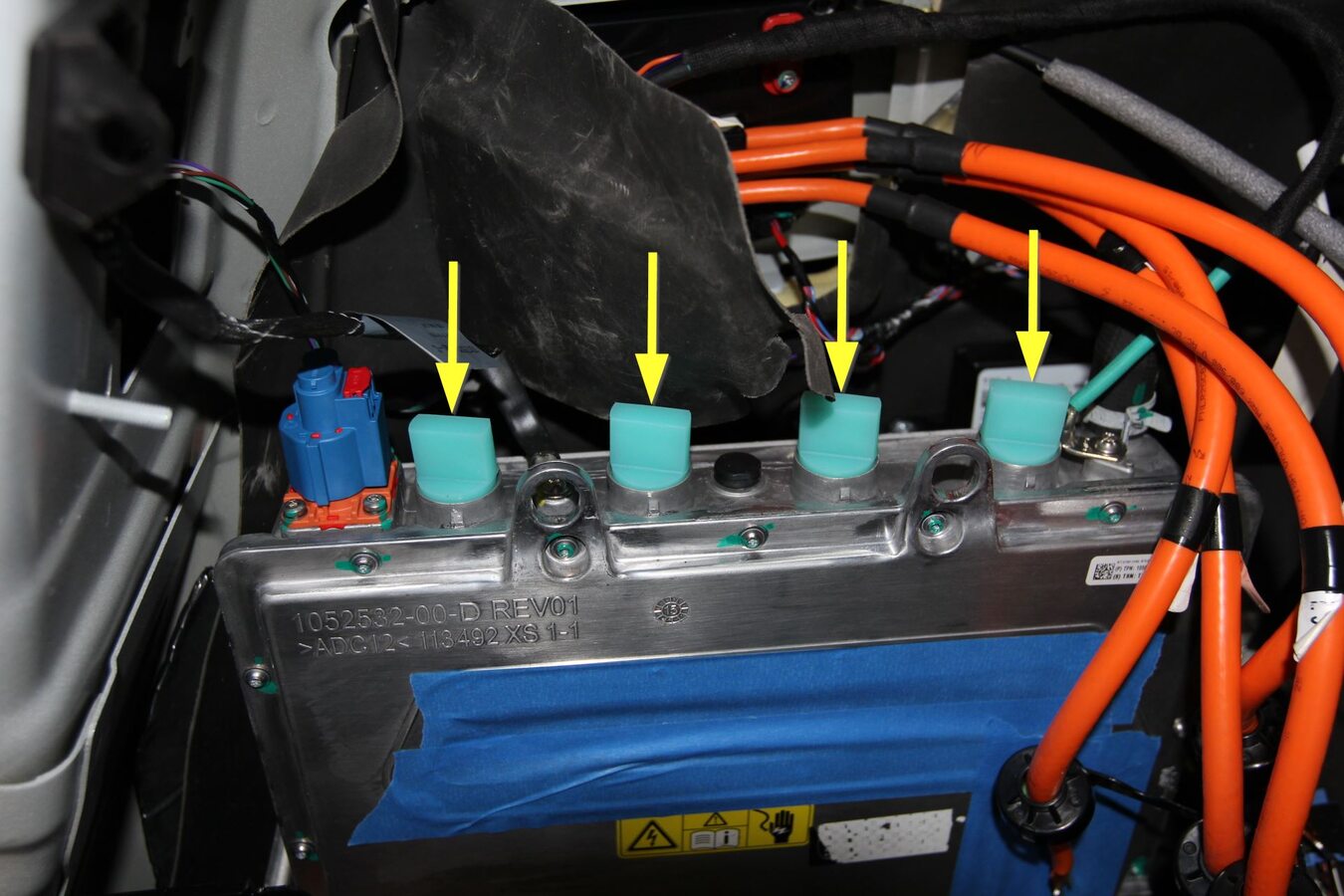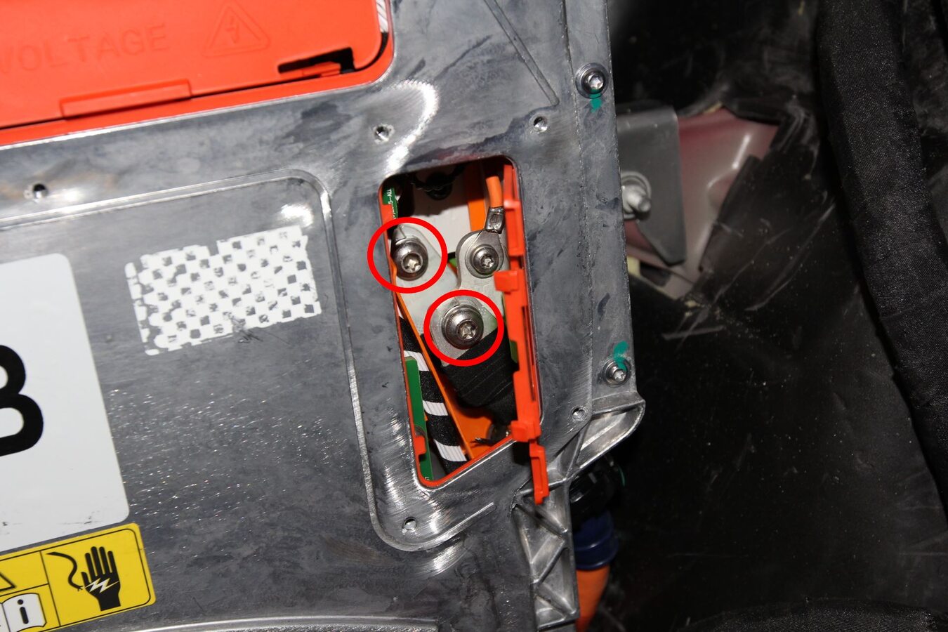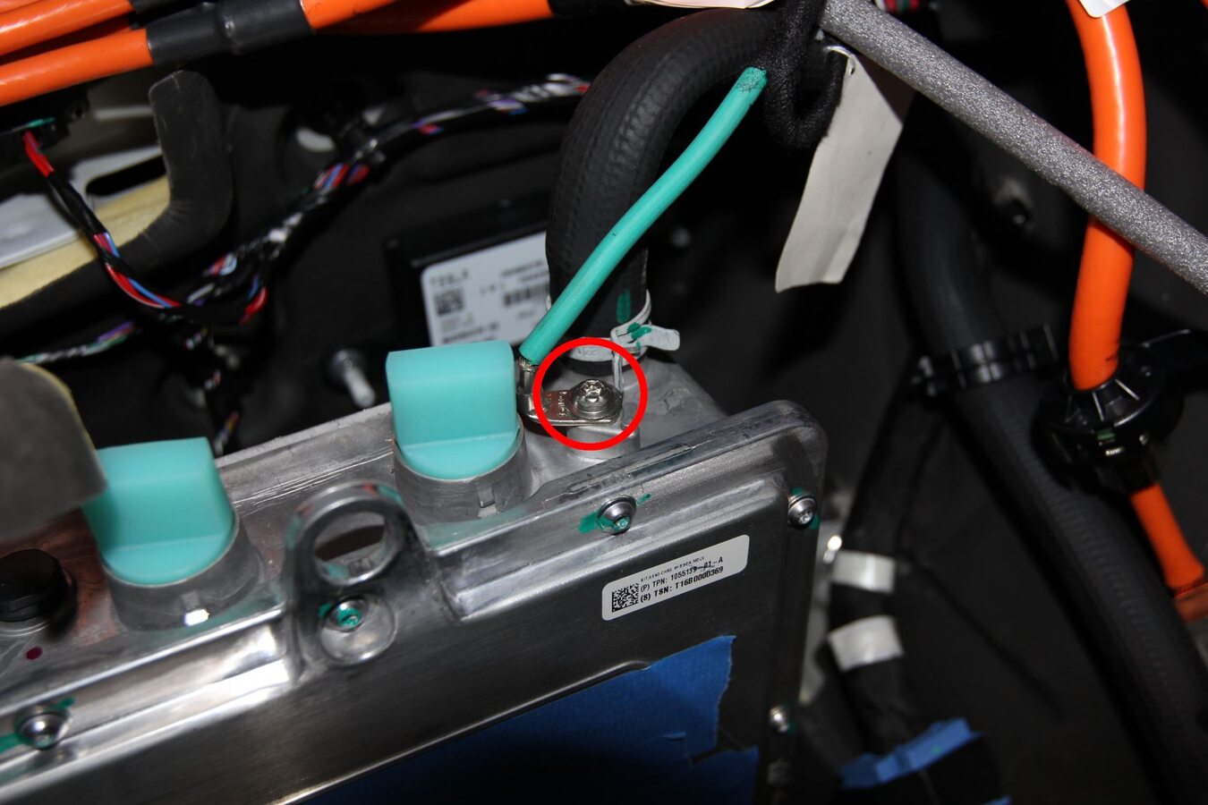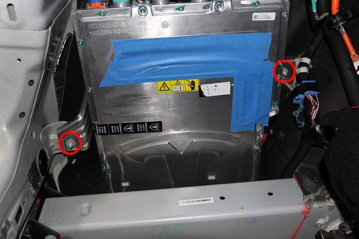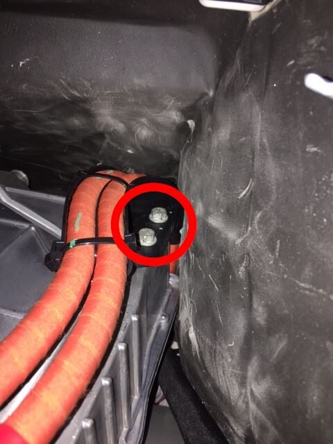 - Remove the nuts (x4) that attach the charge port cables.
