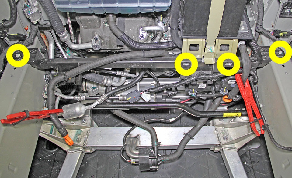 Remove the bolts (x4) that secure the plastic support beam to the body of the vehicle