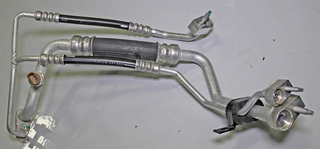 - Remove the condenser-to-chiller high/low pressure pipes from the vehicle.