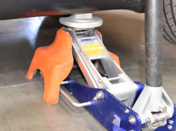 - Position the floor jack under the jack stand, and then carefully lift the vehicle off of the jack stand(s).