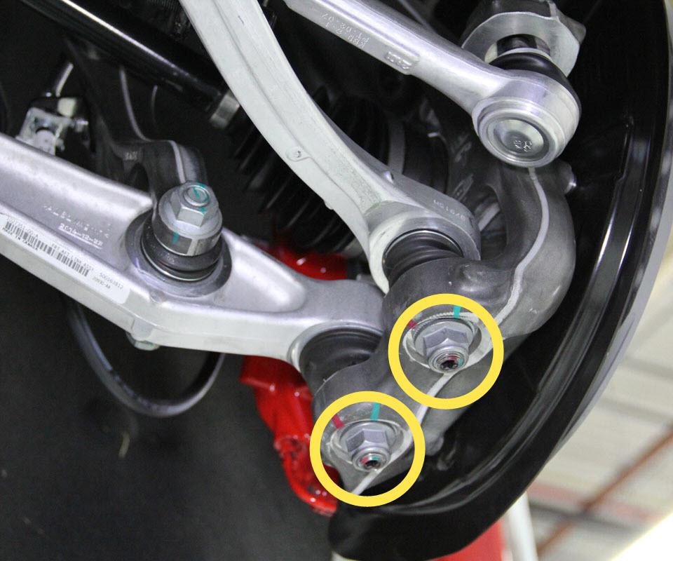 CAUTIONAlways use an orange paint pen to mark bolts after they have been torqued. Unmarked bolts might not be fully torqued, and could result in damage to the suspension.