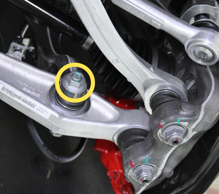 Lower control arm ball joints to the knuckle (torque 195 Nm).