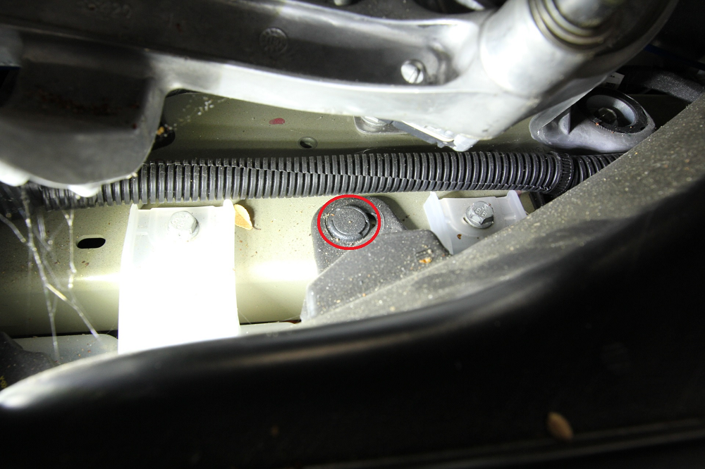 - Remove the push pins (x5) that secure the cowl screen to the vehicle, and then move the cowl screen away from the windshield..