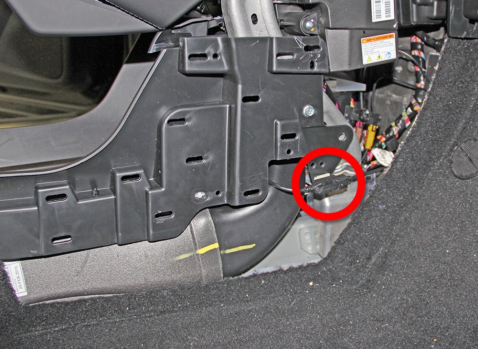 - Release the fir tree clip that secures the 12V electrical connector to the center console.