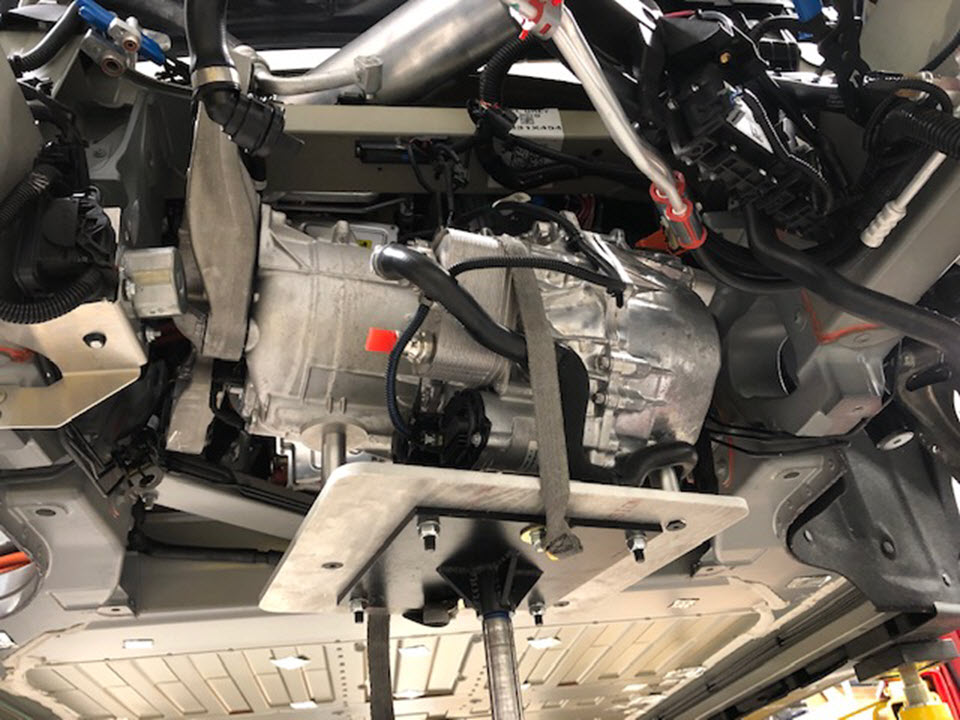 - Position the front drive unit stand and underhoist stand under the vehicle.