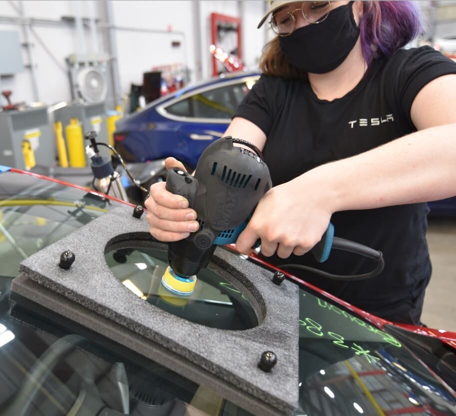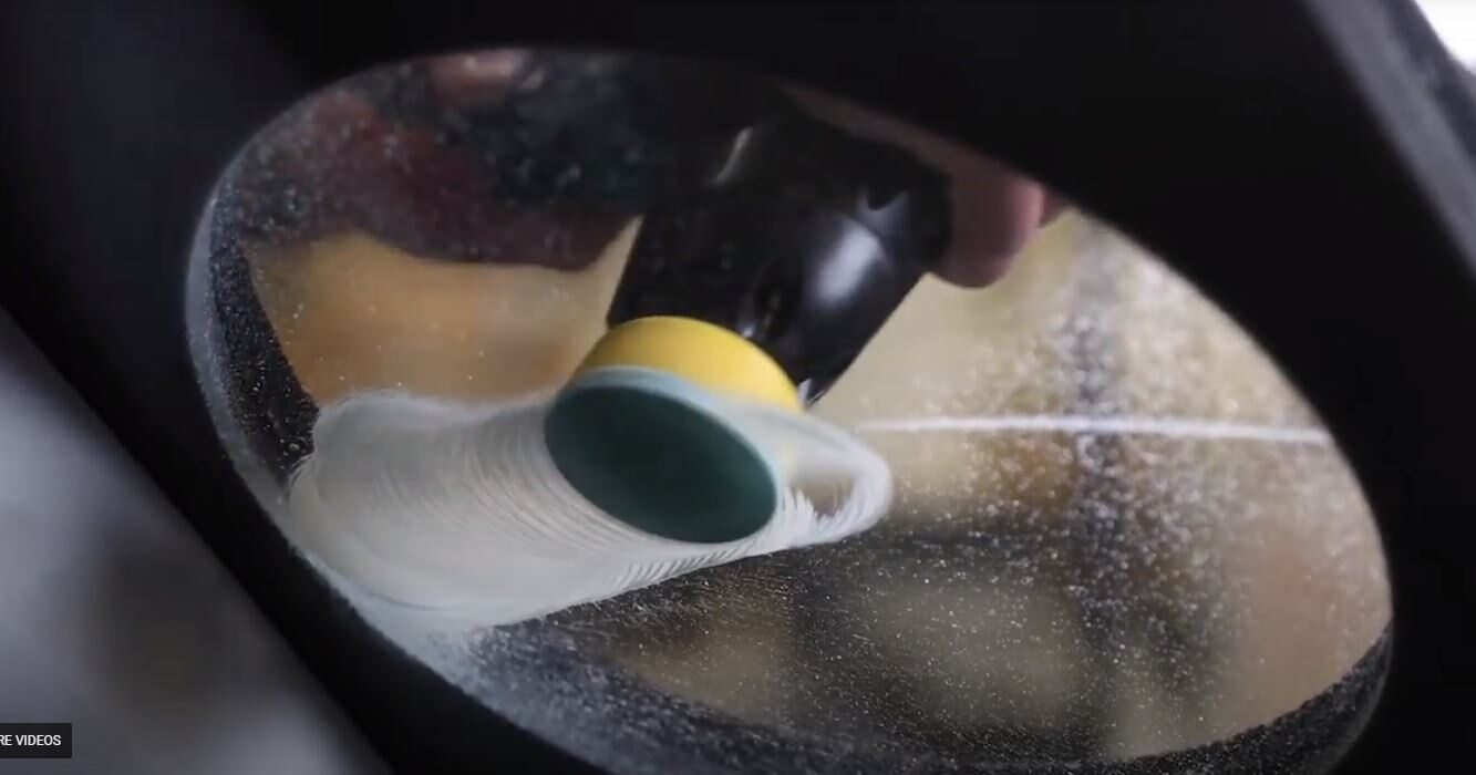 - Re-pressurize the water feed bottle, and then repeat step 13 to finish polishing the windshield in the direction of the scratch.
