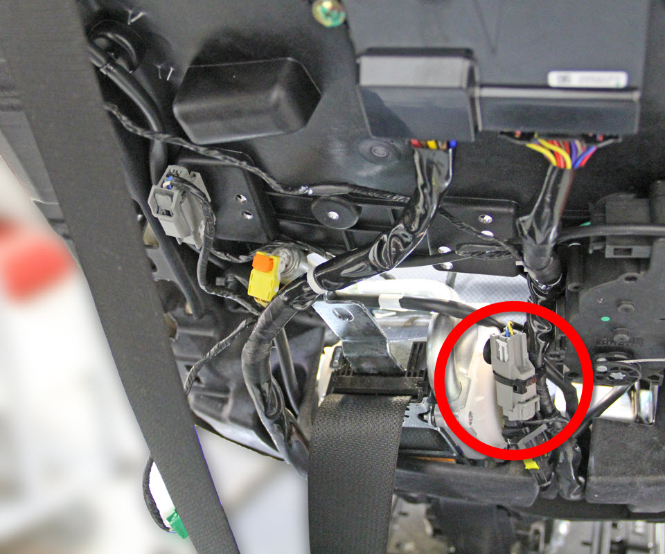 - Disconnect the buckle assembly harness electrical connector.