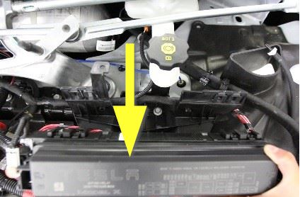 - Release the fuse panel upwards from the fuse panel bracket (4x tabs), and then move the fuse panel forward.