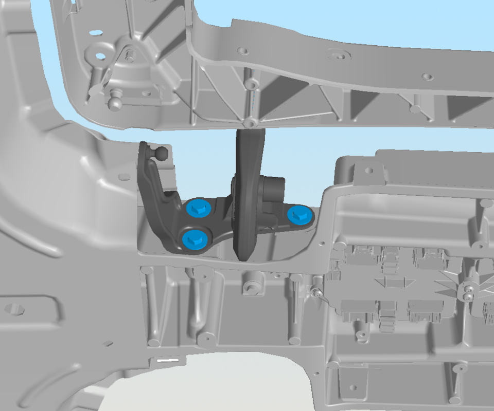 - Remove the bolts (x3) that attach the hinge to the body (torque 38 Nm).