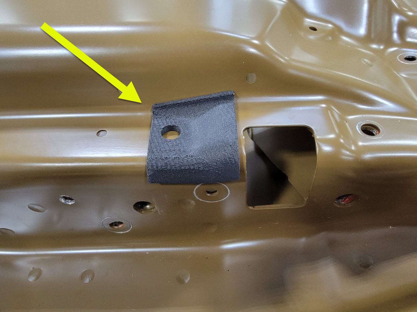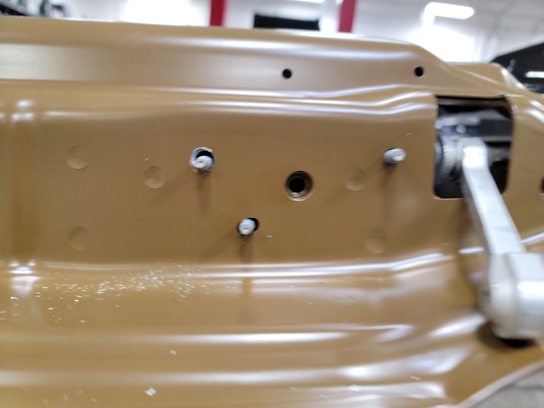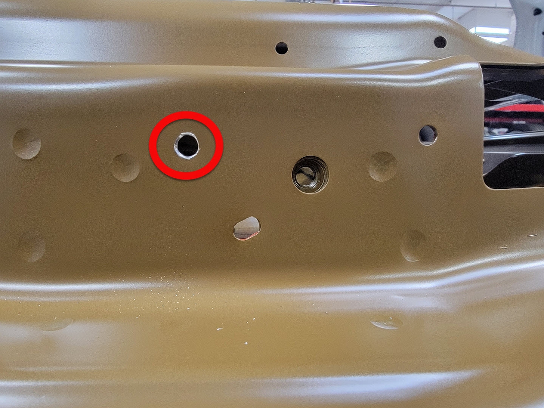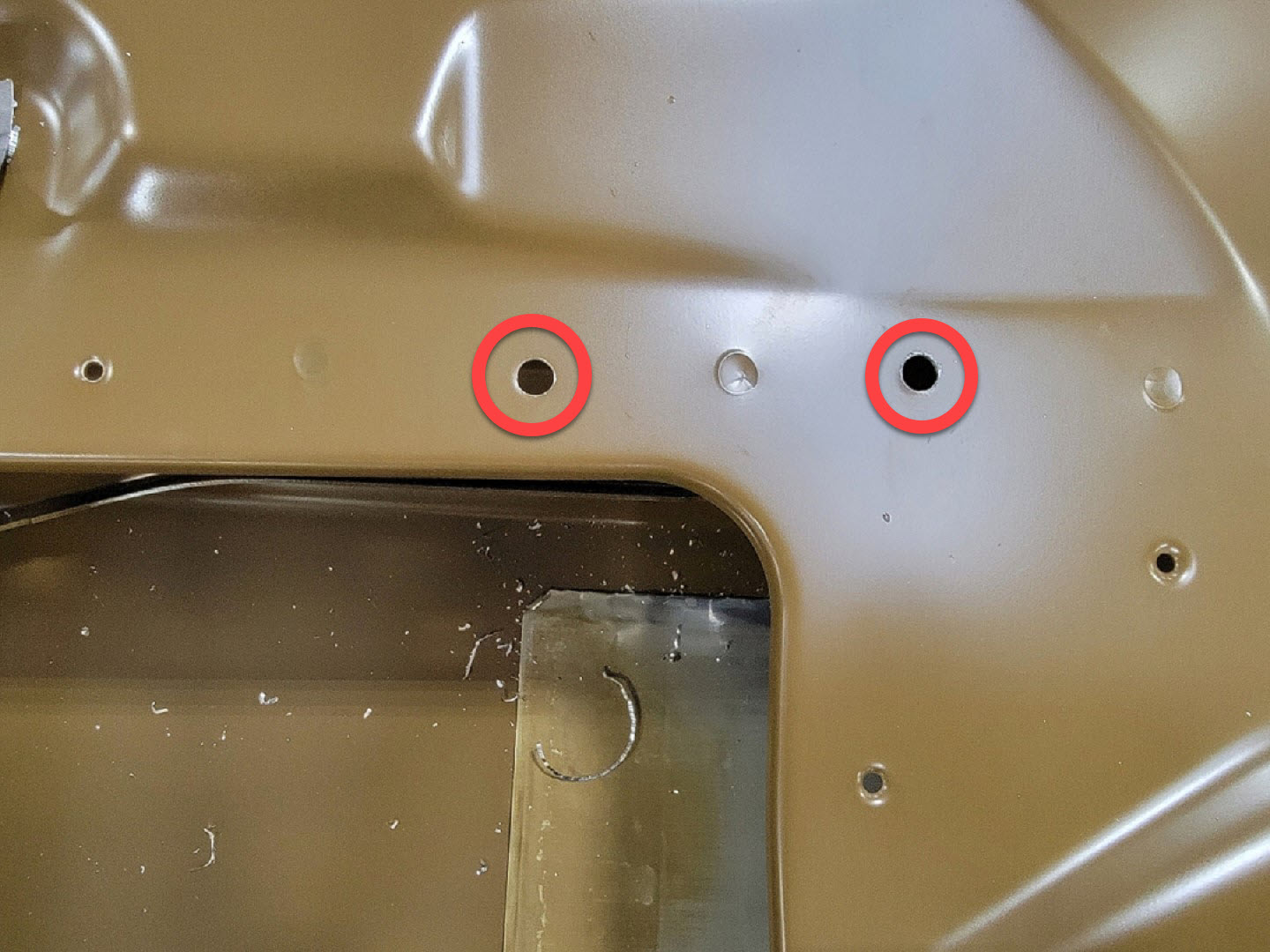 - Drill holes (x2) at dimple locations shown using 9mm drill bit from the drill bit set (1126494-00-A), and then install rivnuts (M6x0.5-3).